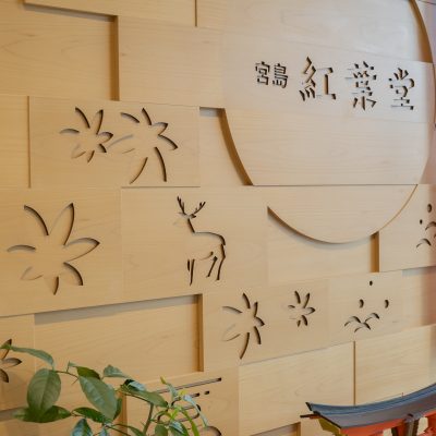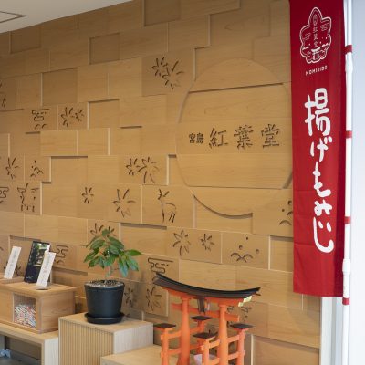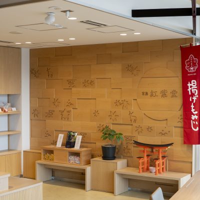 元祖 揚げもみじ 紅葉堂 etto店 物件名 元祖 揚げもみじ 紅葉堂 etto店 住所 広島県廿日市市宮島口1丁目11-8 etto1F カテゴリー 店舗 クライアント 有限会社 紅葉堂 様 設計 株式会社 乃村工藝社 様 デザイン PIVOT 特注柄 ツキ板 地桧 板目 クリア塗装